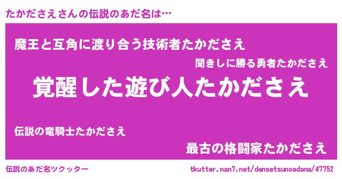 | ヒーロー風カッコイイあだ名 | 『仮面タカダー』『暗黒騎士タカ』 |
