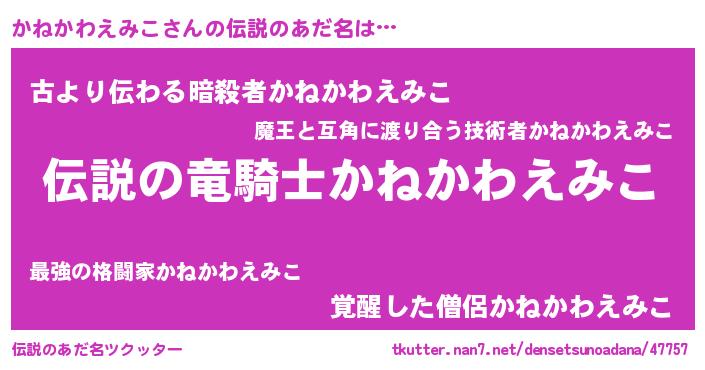 | ヒーロー風カッコイイあだ名 | 『スーパーカネカワエミコ』 |