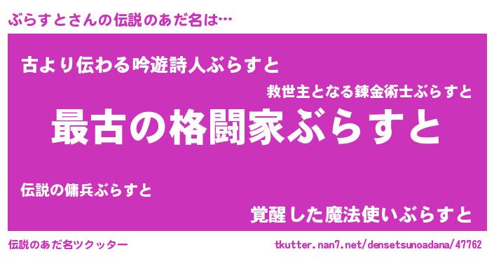 | 意味不明あだ名 | 『ぶらすとフォーエバー』『自称ぶらすと』 |