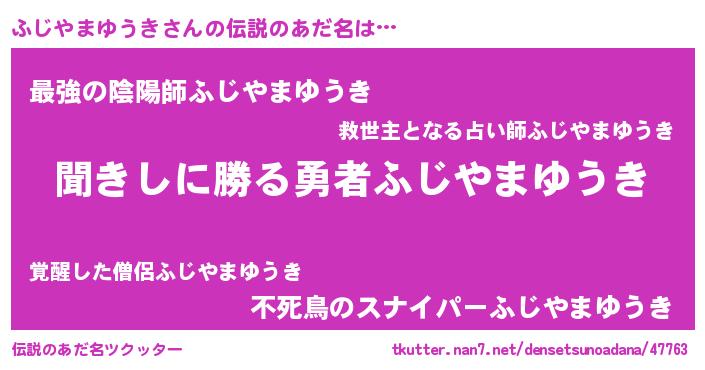 | 男性向けラノベタイトル風あだ名 | 『ふじやまゆうきという概念が存在しない退屈な世界 』 |