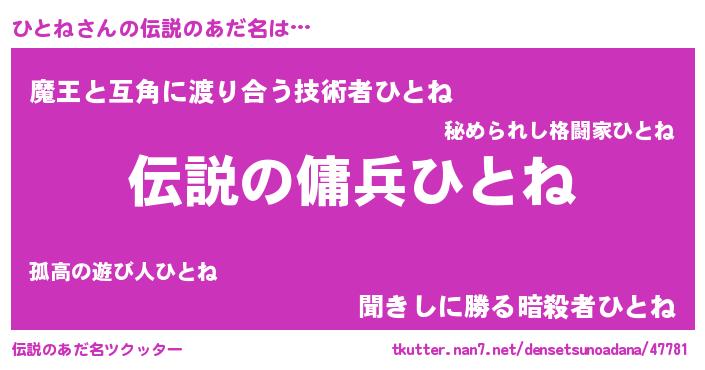 | ヒーロー風カッコイイあだ名 | 『スーパーヒトネ』『愛の使者ひとね』 |