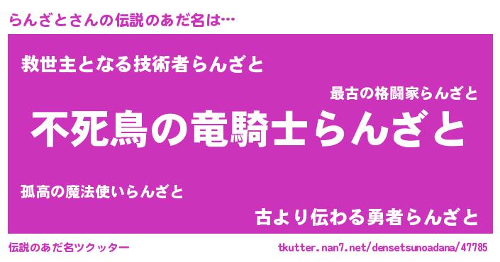 | 女子向けラノベタイトル風あだ名 | 『らんざと姫と円卓の騎士』 |