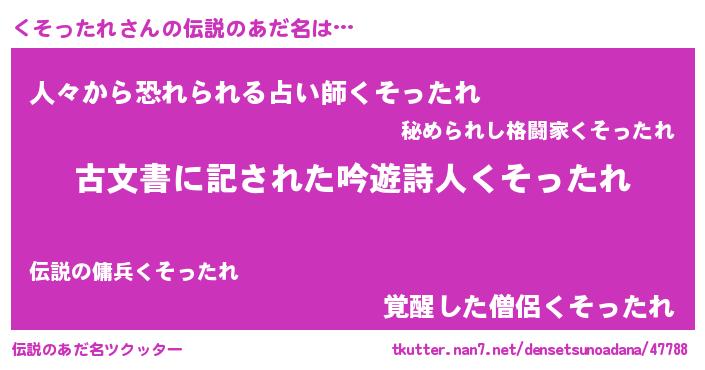 | 意味不明あだ名 | 『永久保存くそったれ』『自称くそったれ』 |