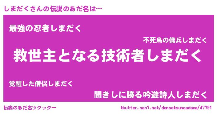| ヒーロー風カッコイイあだ名 | 『究極戦士シマダク』『ネオシマダク』 |