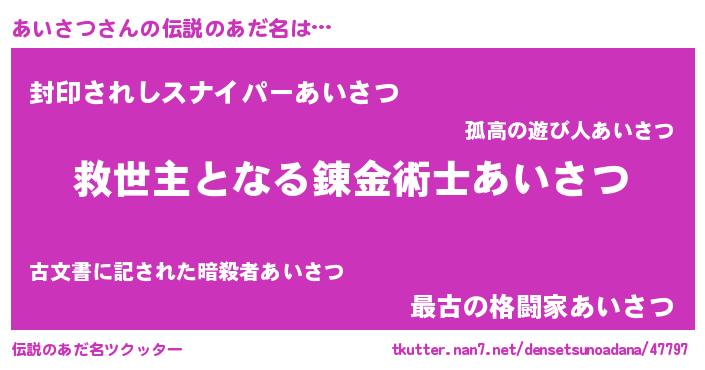 | ヒーロー風カッコイイあだ名 | 『天空の使者あいさつ』『仮面アイダー』 |