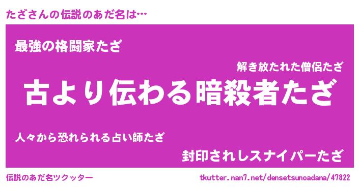 | 胡散臭い通販商品みたいなあだ名 | 『来世でも幸せになれる健康食品…その名も「たざ」』 |