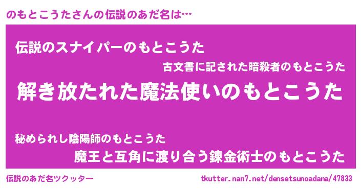 | 胡散臭い通販商品みたいなあだ名 | 『伝統あるサプリメント…その名も「のもとこうた」』 |