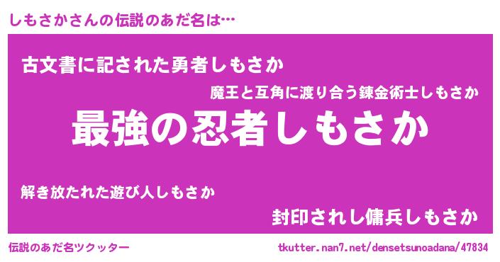 | ヒーロー風カッコイイあだ名 | 『仮面シモダー』『ウルトラしもさかマン』 |
