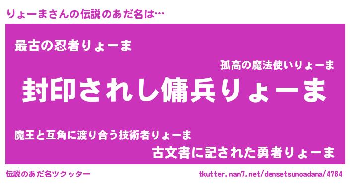 | 胡散臭い通販商品みたいなあだ名 | 『億万長者になれる水晶球…その名も「りょーま」』 |