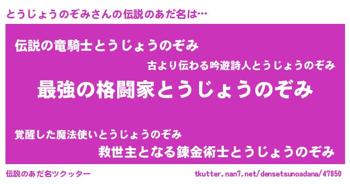 | ヒーロー風カッコイイあだ名 | 『仮面トウダー』『ネオトウジョウノゾミ』 |