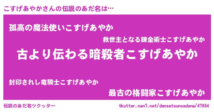 | ヘコむあだ名 | 『こすげあやか(笑)』『こすを』 |