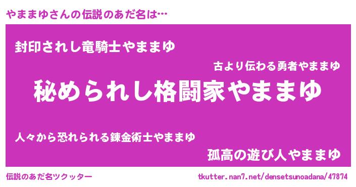 | ファンタジー風あだ名 | 『エターナルヤママユー』『ヤマフェル』 |
