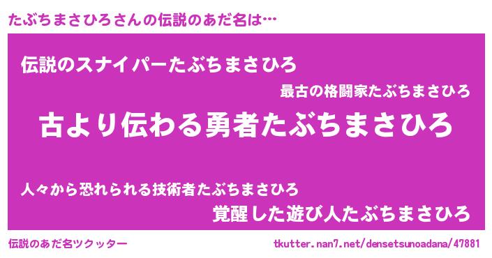 | 胡散臭い通販商品みたいなあだ名 | 『来世でも幸せになれる水素水…その名も「たぶちまさひろ」』 |