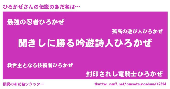 | ヒーロー風カッコイイあだ名 | 『ネオヒロカゼ』『ウルトラひろかぜマン』 |