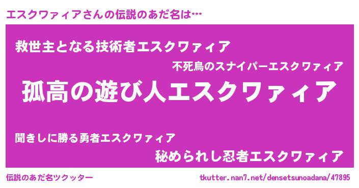 | 意味不明あだ名 | 『自称エスクワァィア』 |