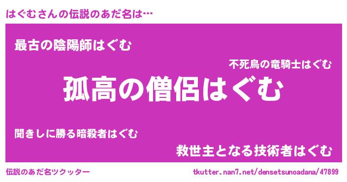 | 意味不明あだ名 | 『自称はぐむ』『とにかく怪しいはぐむ』 |