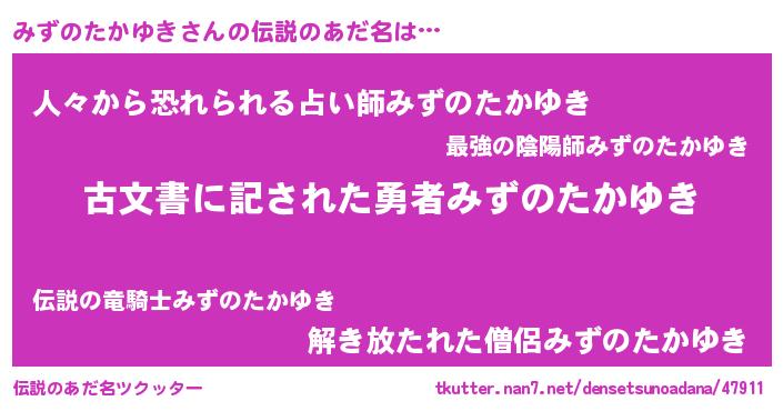 | 意味不明あだ名 | 『永久保存みずのたかゆき』 |