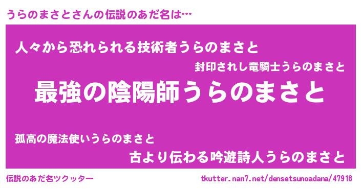 | ヒーロー風カッコイイあだ名 | 『ウルトラうらのまさとマン』 |