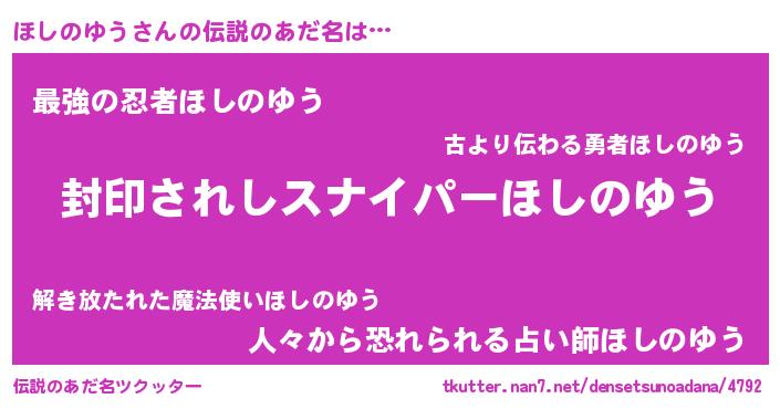 | ファンタジー風あだ名 | 『ホシフェル』『エターナルホシノユウー』 |
