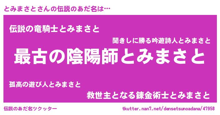 | ヒーロー風カッコイイあだ名 | 『仮面トミダー』『スーパートミマサト』 |