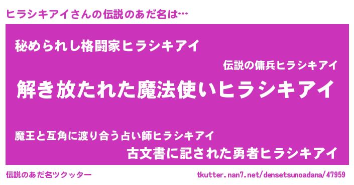 | ヒーロー風カッコイイあだ名 | 『仮面ヒラダー』『暗黒騎士ヒラ』 |