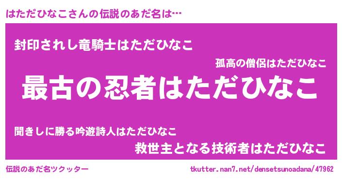 | ファンタジー風あだ名 | 『エターナルハタダヒナコー』 |