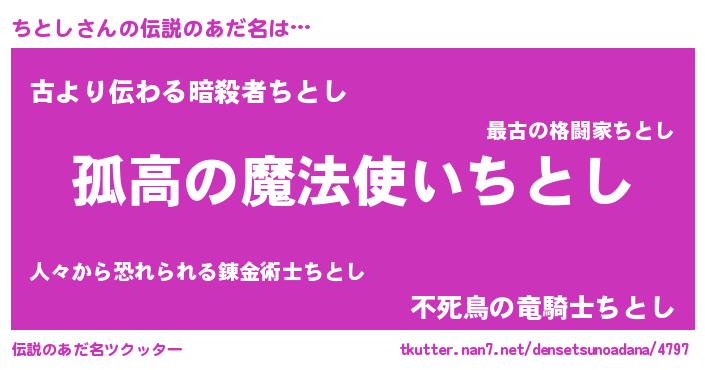 | 胡散臭い通販商品みたいなあだ名 | 『信頼と実績のサプリメント…その名も「ちとし」』 |