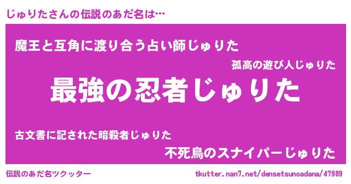 | 意味不明あだ名 | 『じゅりたフォーエバー』『自称じゅりた』 |