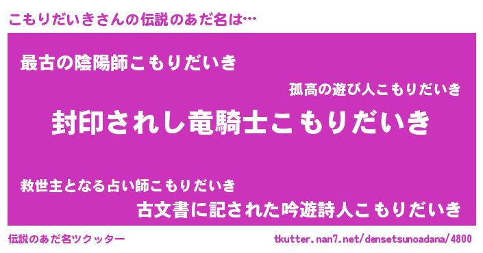男性向けラノベタイトル風あだ名 | 『コモリダイキアートオンライン』 |