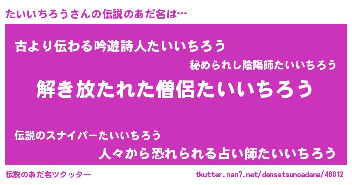 | 女子向けラノベタイトル風あだ名 | 『乙女ゲームの破滅フラグしかない悪役たいいちろうに転生してしまった…』 |