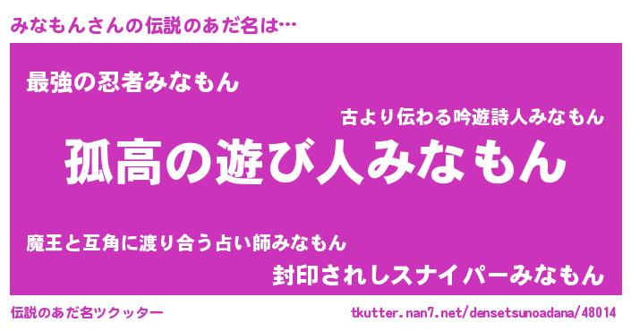| 胡散臭い通販商品みたいなあだ名 | 『信頼と実績のペンダント…その名も「みなもん」』 |