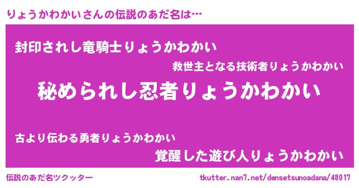 | 意味不明あだ名 | 『りょうかわかいフォーエバー』 |