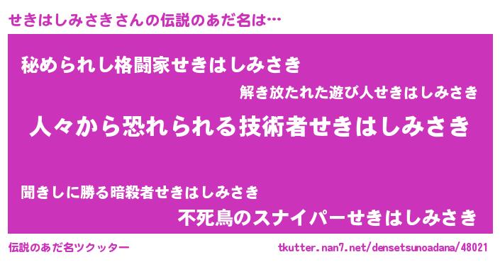 | ポケモン風あだ名 | 『セックウザ』『セキハダネ』 |