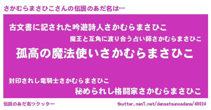 | 意味不明あだ名 | 『とにかく怪しいさかむらまさひこ』 |