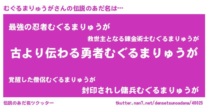 | 意味不明あだ名 | 『永久保存むぐるまりゅうが』 |