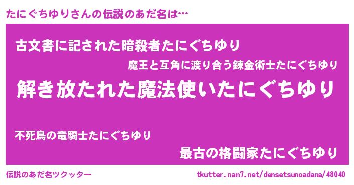 | 肩書あだ名 | 『たにぐちゆり団長』『たにぐちゆり中将』 |