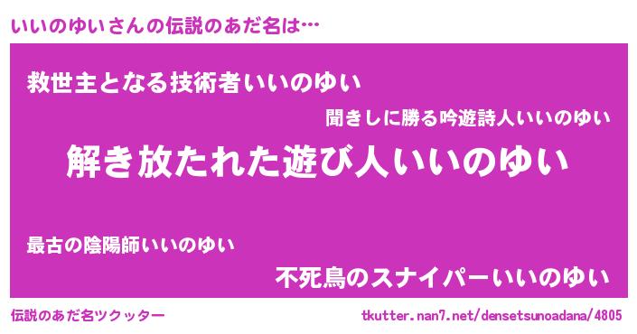 | 意味不明あだ名 | 『住所不定無職いいのゆい(84歳)』 |