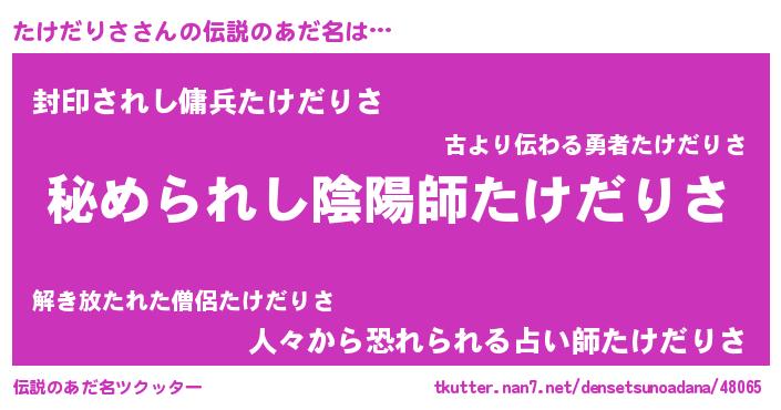 | ヘコむあだ名 | 『つくし』『たけにゅー』『たけ太郎』 |