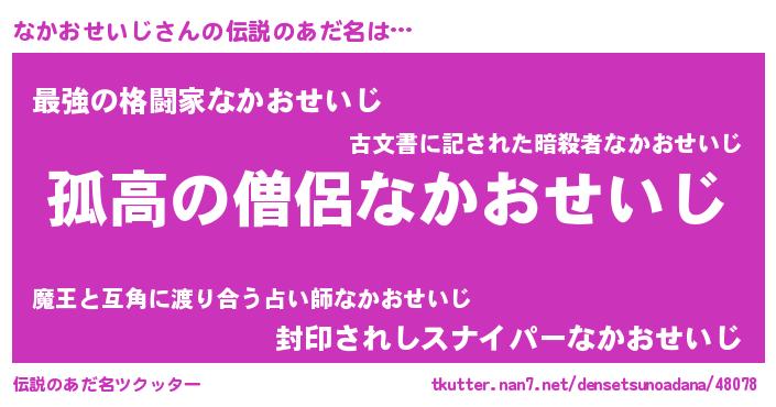 | 意味不明あだ名 | 『自称なかおせいじ』 |