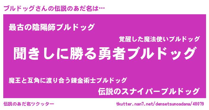 | 意味不明あだ名 | 『住所不定無職ブルドッグ(79歳)』 |