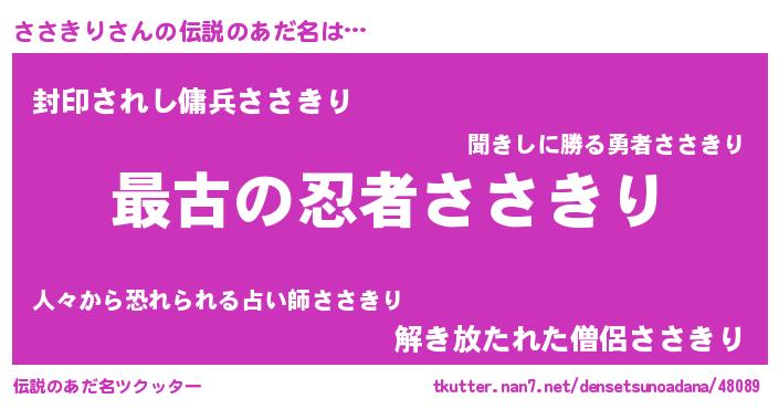 | 意味不明あだ名 | 『自称ささきり』『もやし科ささきり属』 |