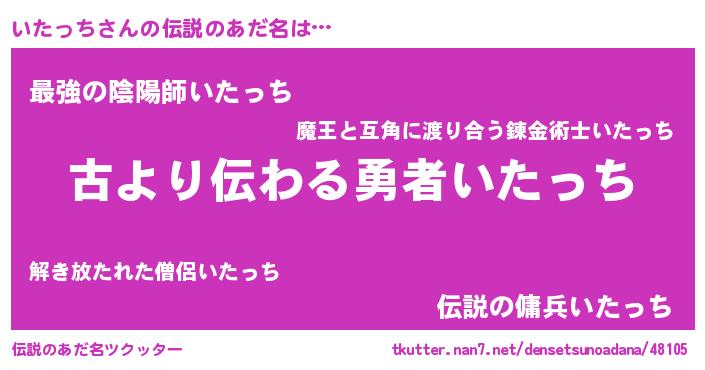 | ヒーロー風カッコイイあだ名 | 『ネオイタッチ』『ウルトラいたっちマン』 |