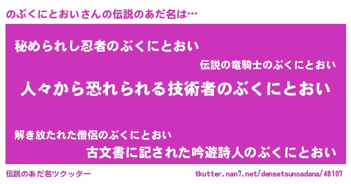 | 胡散臭い通販商品みたいなあだ名 | 『ガンによく効く高麗人参…その名も「のぶくにとおい」』 |
