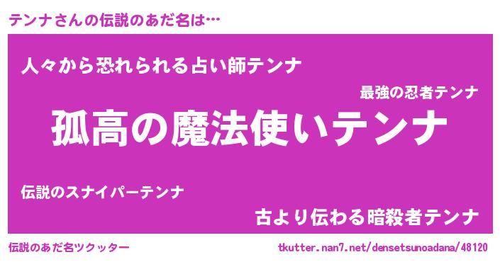 | 胡散臭い通販商品みたいなあだ名 | 『信頼と実績のサプリメント…その名も「テンナ」』 |