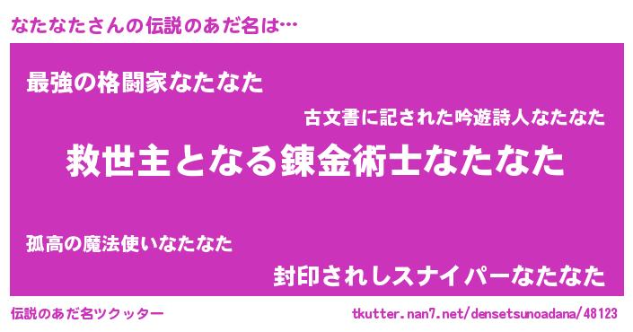 | ヒーロー風カッコイイあだ名 | 『慈愛の使者なたなた』『ネオナタナタ』 |