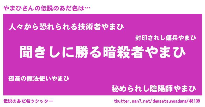| ヘコむあだ名 | 『やまひ(爆)』『牛乳』『やまふぇ~』 |