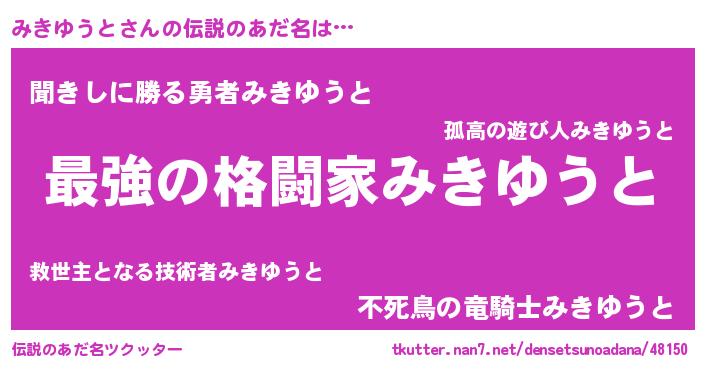 | 意味不明あだ名 | 『自称みきゆうと』『永久保存みきゆうと』 |