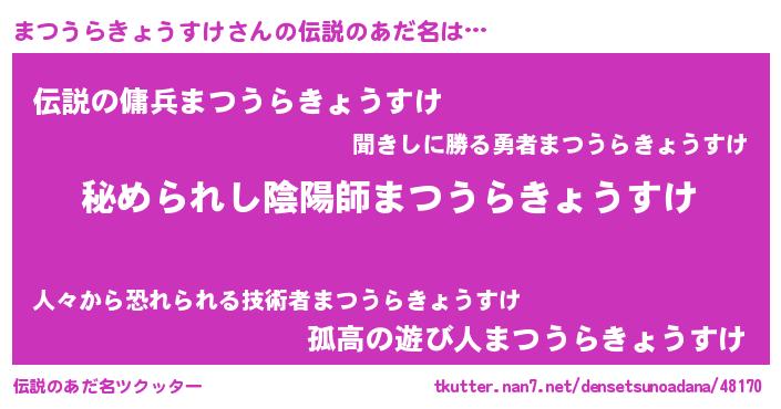| 意味不明あだ名 | 『自称まつうらきょうすけ』 |