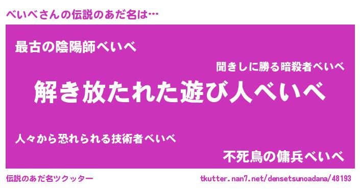 | ヒーロー風カッコイイあだ名 | 『魔戒騎士ベイ』『ウルトラべいべマン』 |