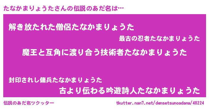 | 胡散臭い通販商品みたいなあだ名 | 『テレビで話題の高麗人参…その名も「たなかまりょうた」』 |